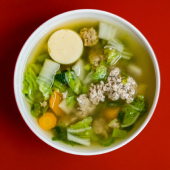 A comforting, healthy and delicious mixed chicken sweet corn soup.